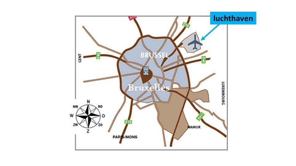 Waar bevindt zich de luchthaven van Zaventem als je in het midden van Brussel bent?