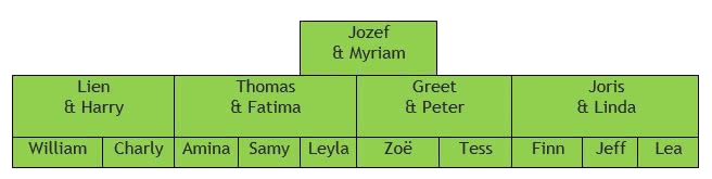 Dit is de stamboom van Amina. Zij is 11 jaar. Amina heeft vorige week samen met haar oma haar stamboom opgesteld.