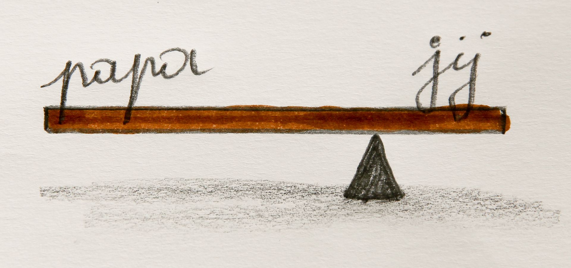 In de speeltuin staan 3 wippen. Papa weegt 70 kilogram. Jij weegt 30 kilogram. Jij
