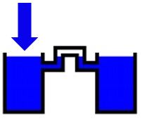 Op welke tekening staat het water in het tweede vat juist gekleurd?
